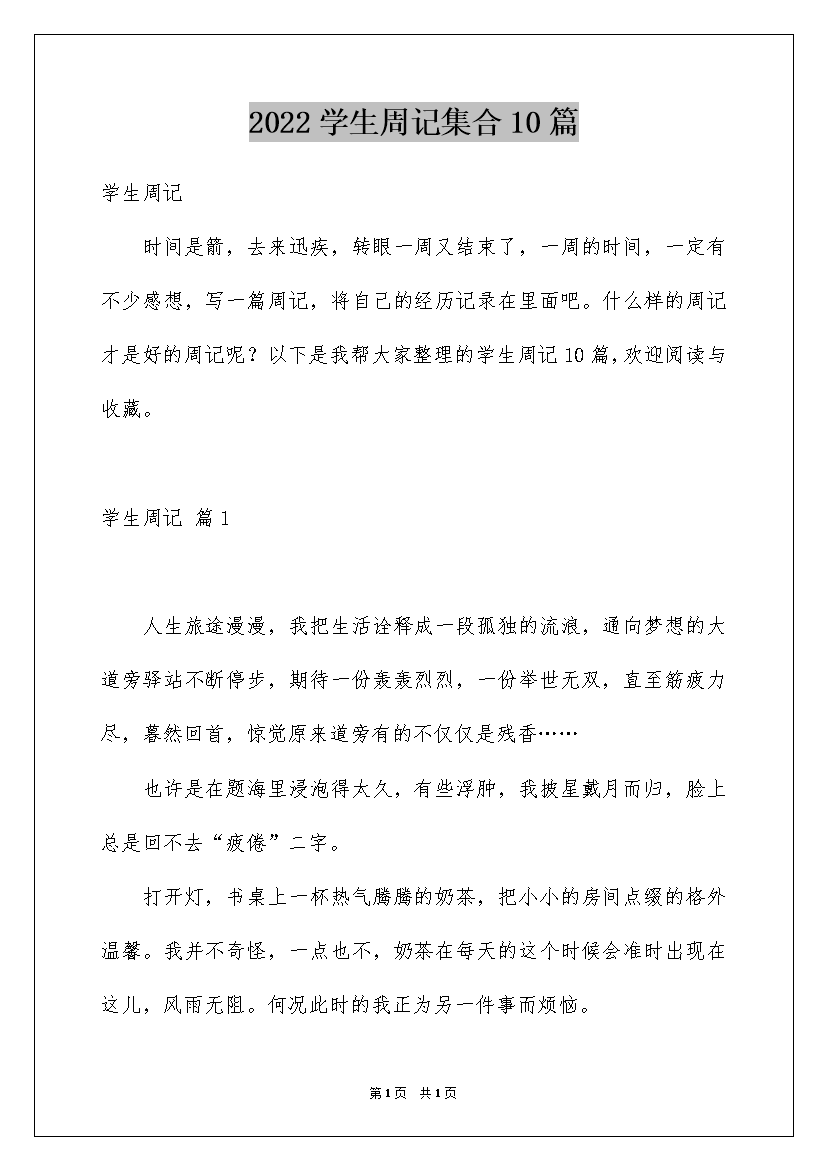 2022学生周记集合10篇