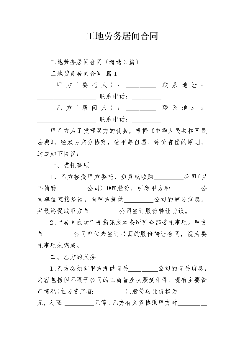 工地劳务居间合同