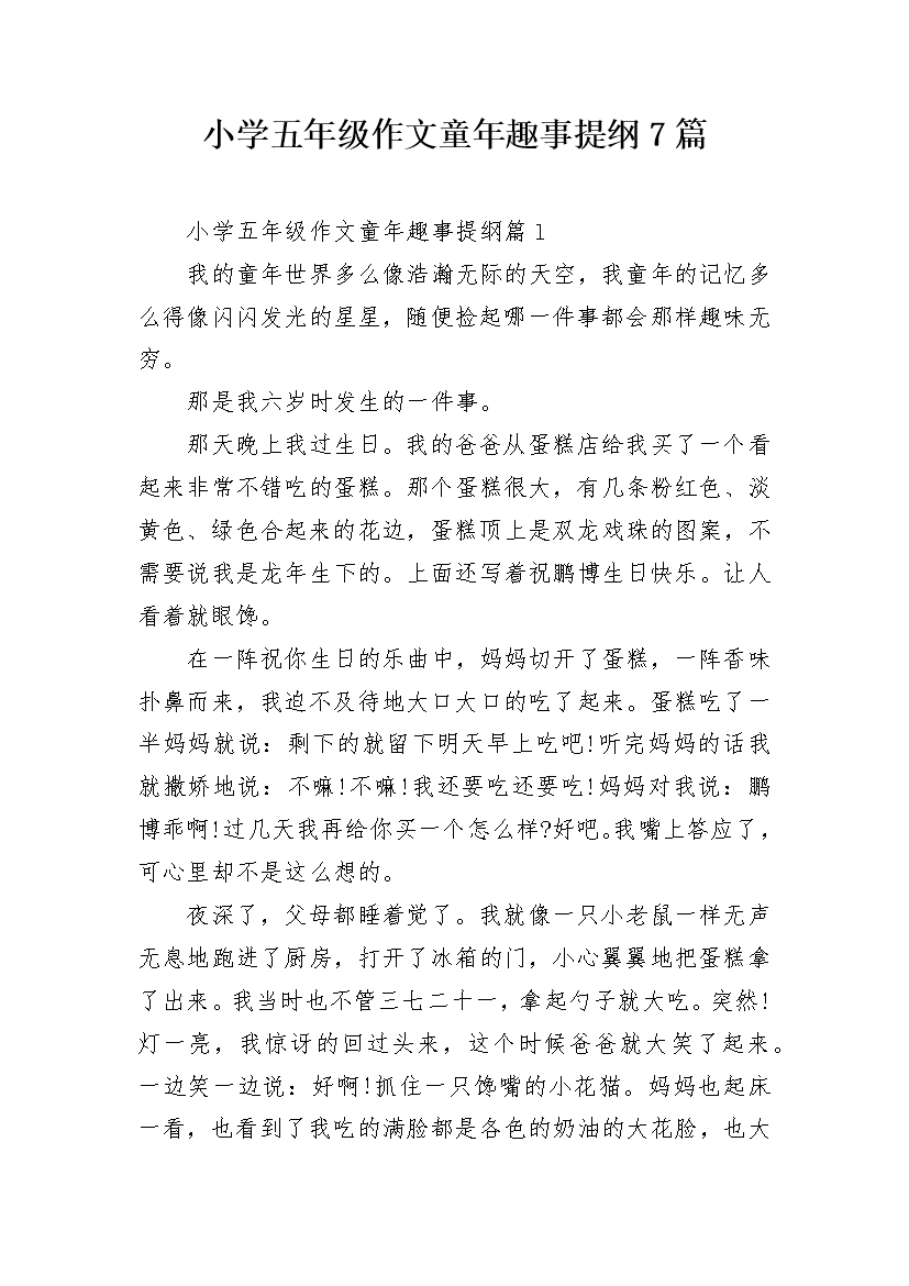 小学五年级作文童年趣事提纲7篇