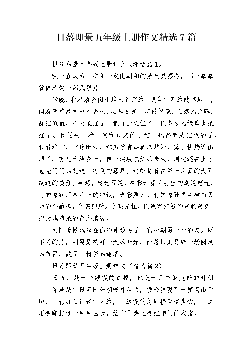 日落即景五年级上册作文精选7篇