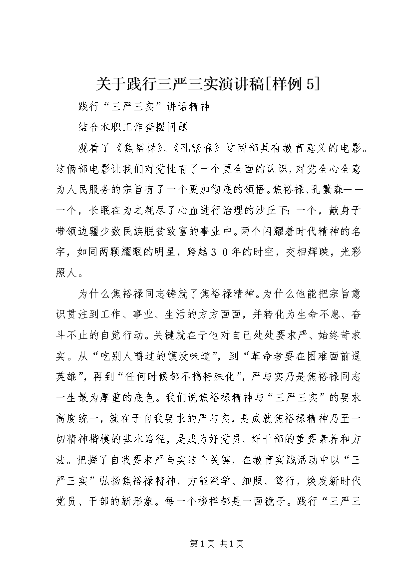 关于践行三严三实演讲稿[样例5] (5)