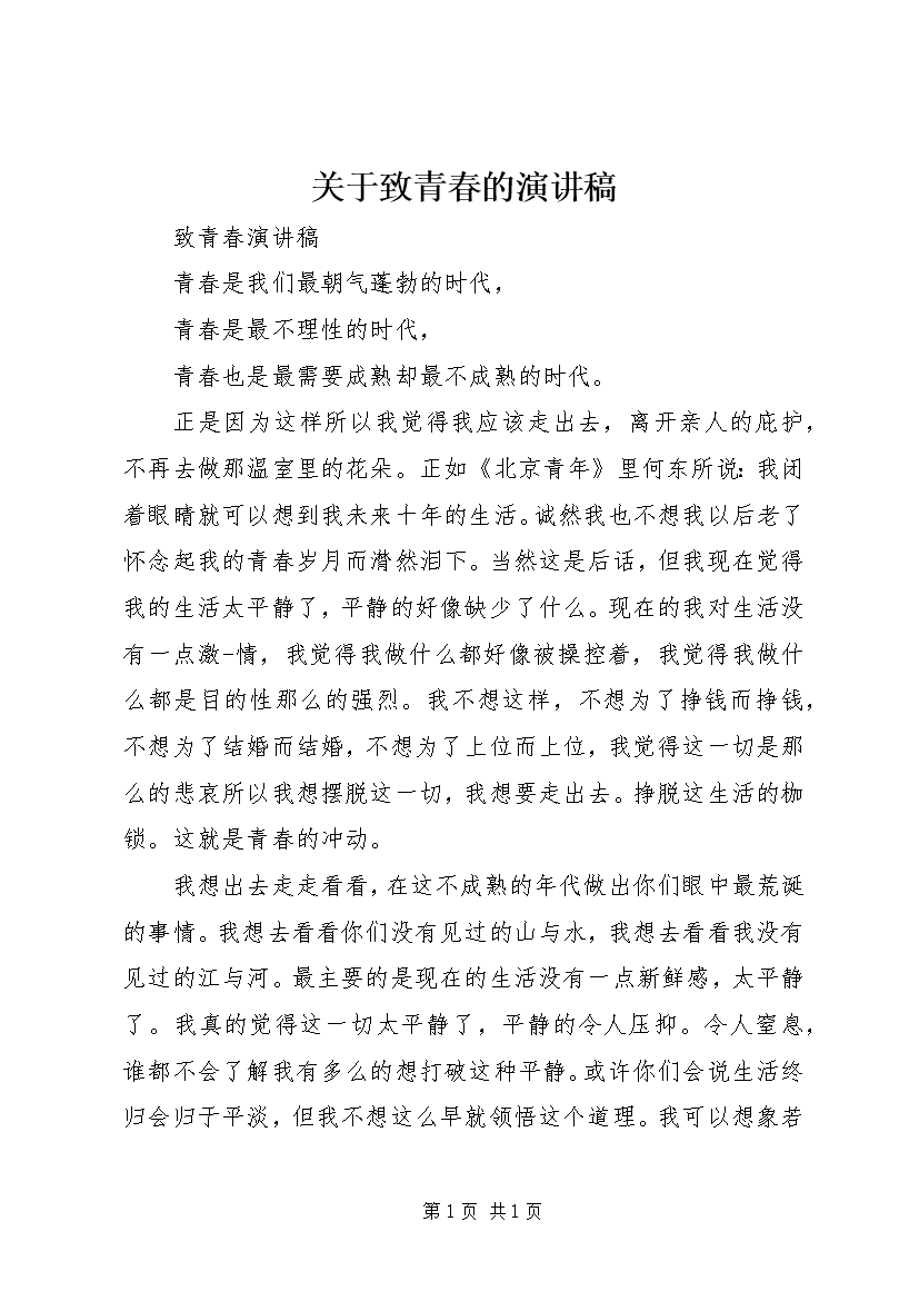 关于致青春的演讲稿