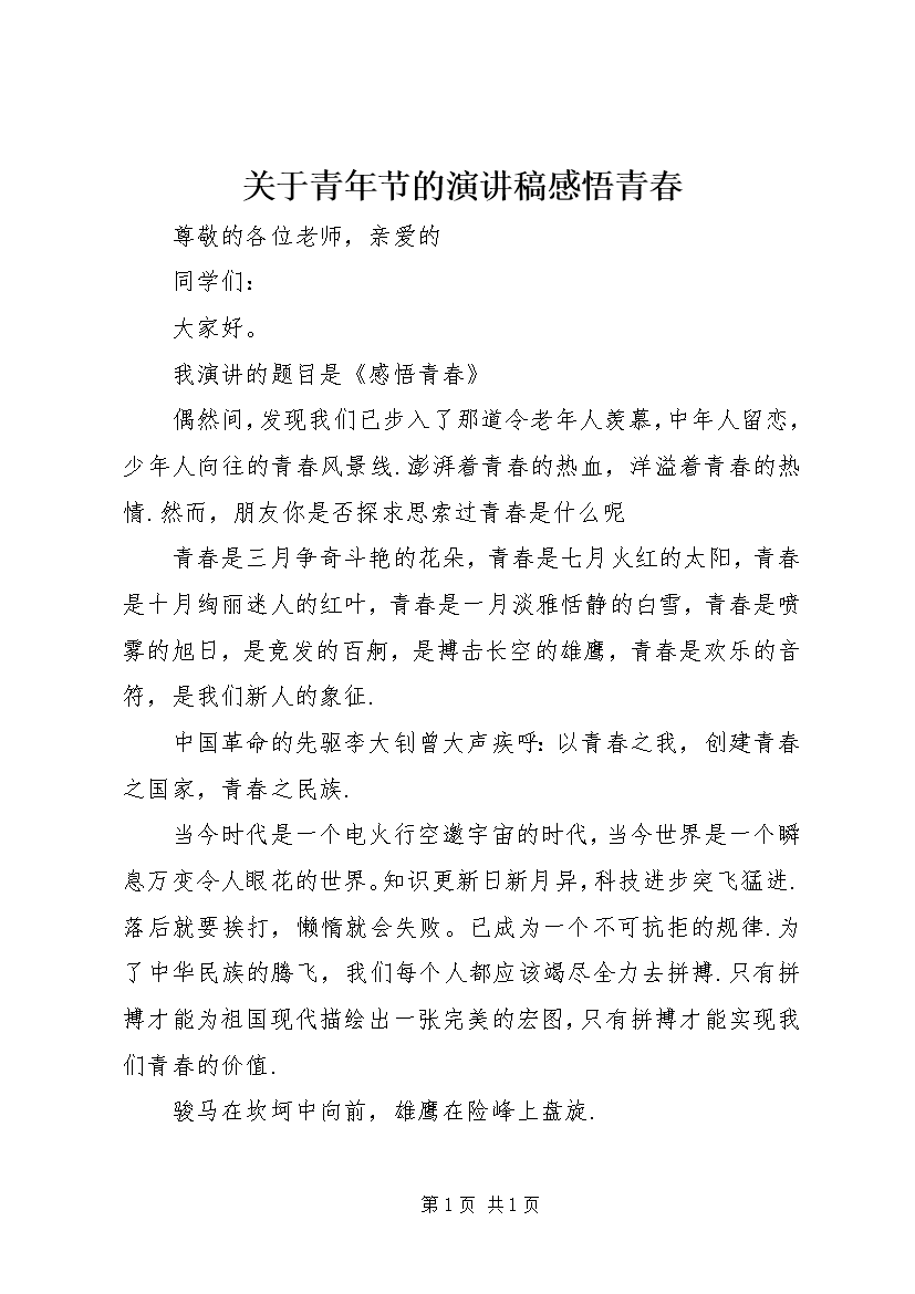 关于青年节的演讲稿感悟青春 (3)