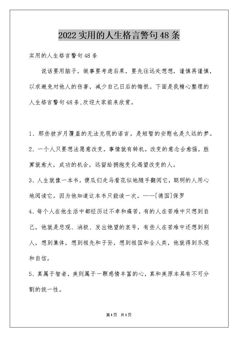 2022实用的人生格言警句48条