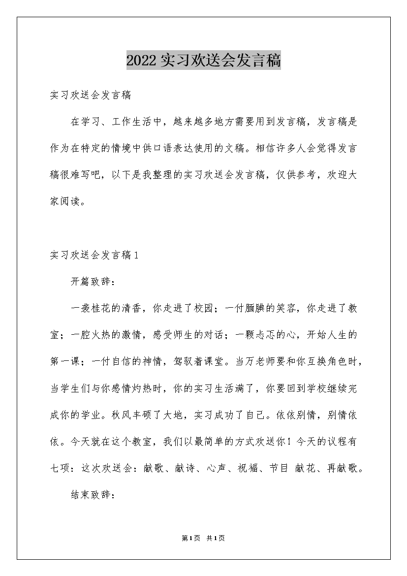 2022实习欢送会发言稿
