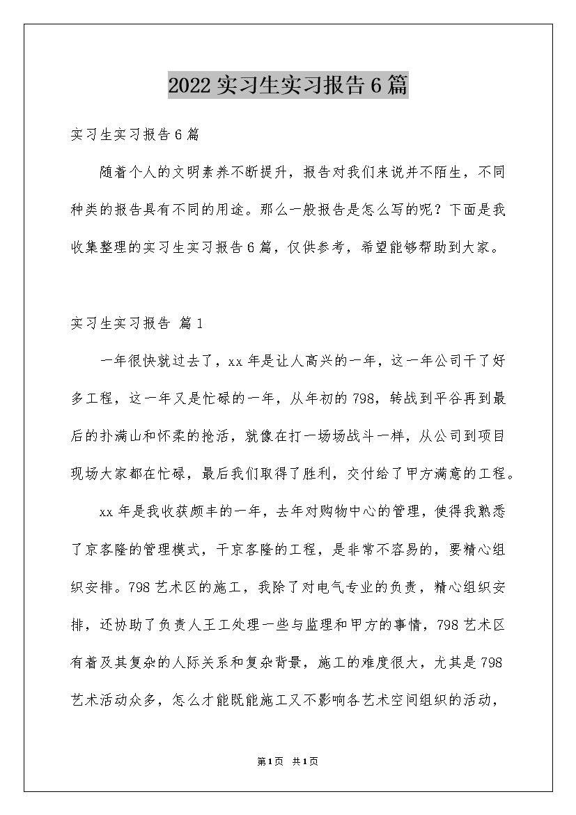 2022实习生实习报告6篇