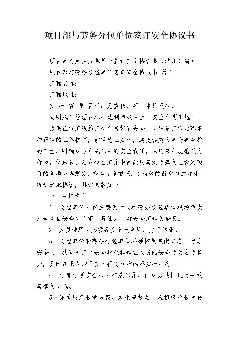 项目部与劳务分包单位签订安全协议书