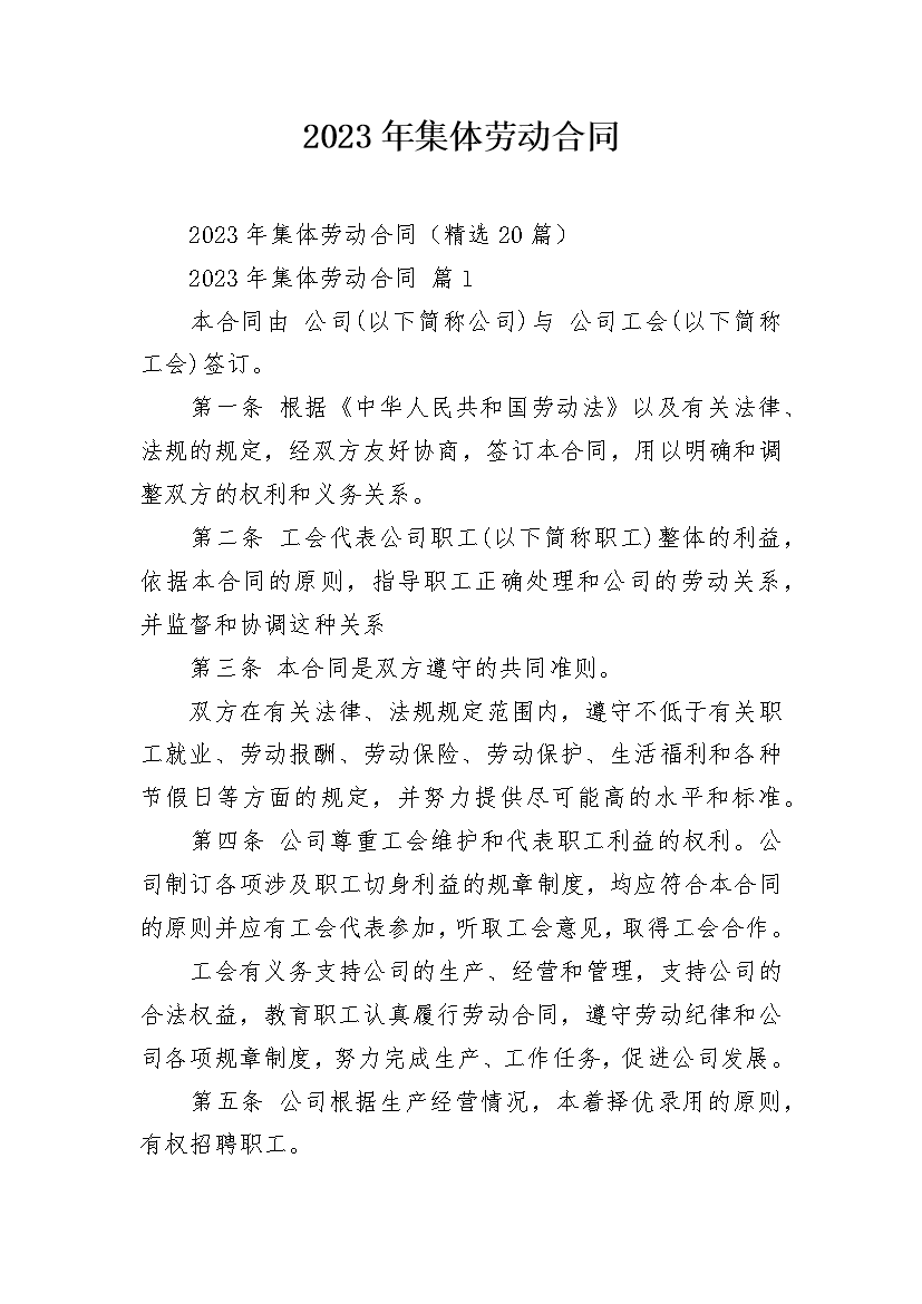 2023年集体劳动合同