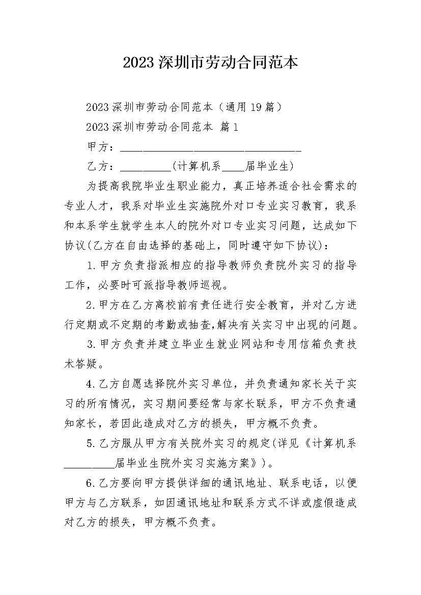 2023深圳市劳动合同范本