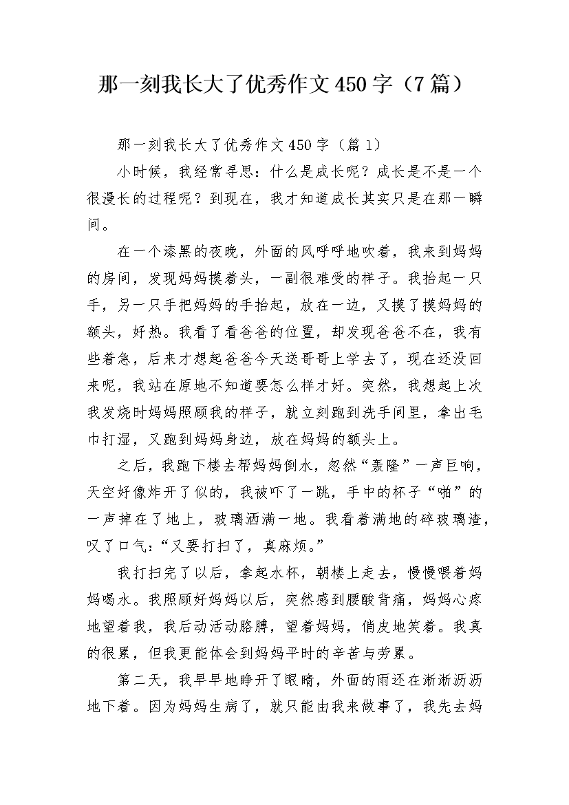 那一刻我长大了优秀作文450字(7篇)