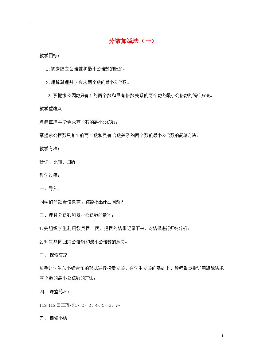教案-全国-2012_四年级数学下册 分数加减法(一)4教案 青岛版五年制