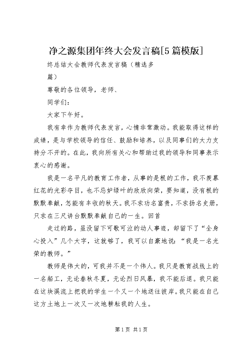 净之源集团年终大会发言稿[5篇模版] (2)