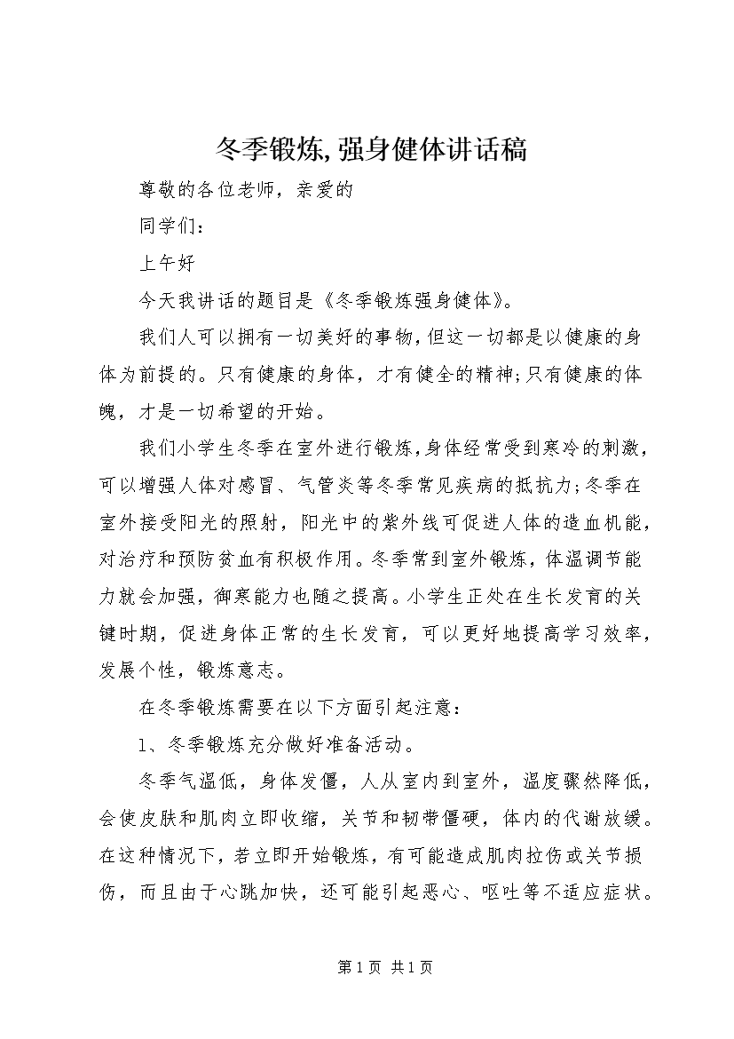 冬季锻炼,强身健体讲话稿 (3)