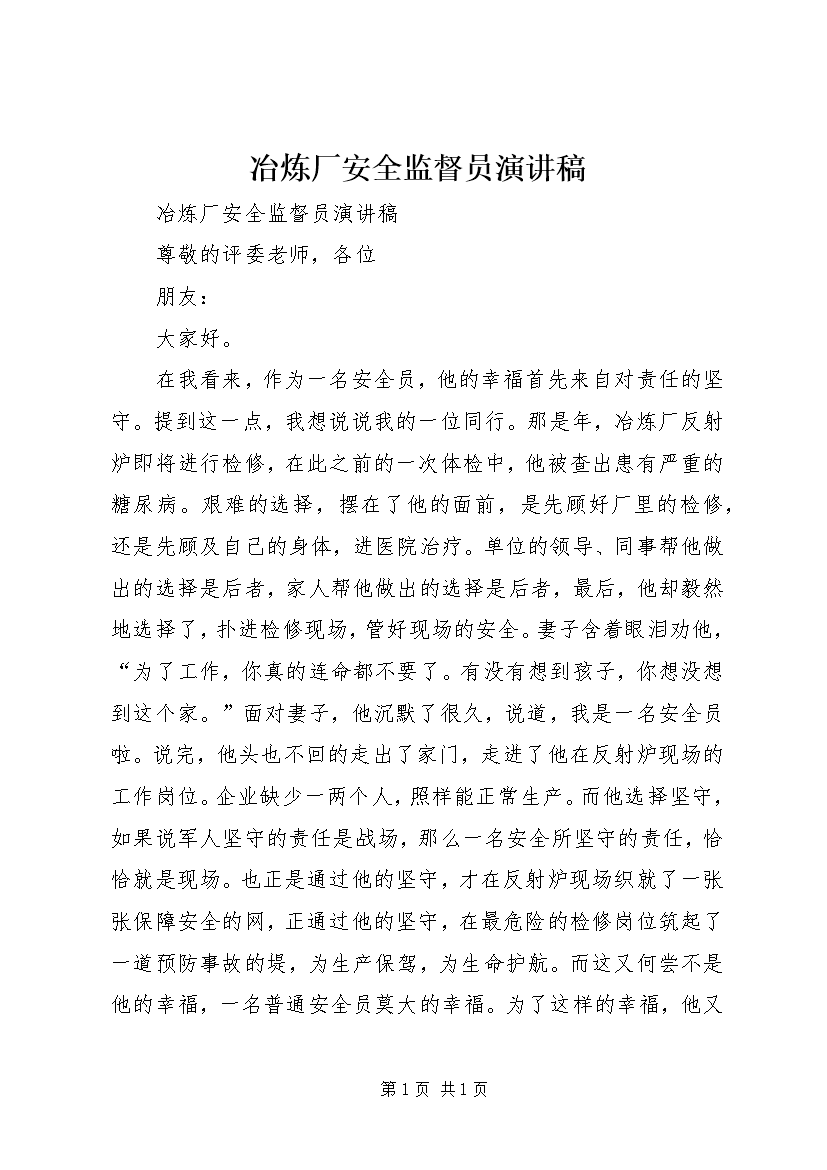 冶炼厂安全监督员演讲稿 (2)