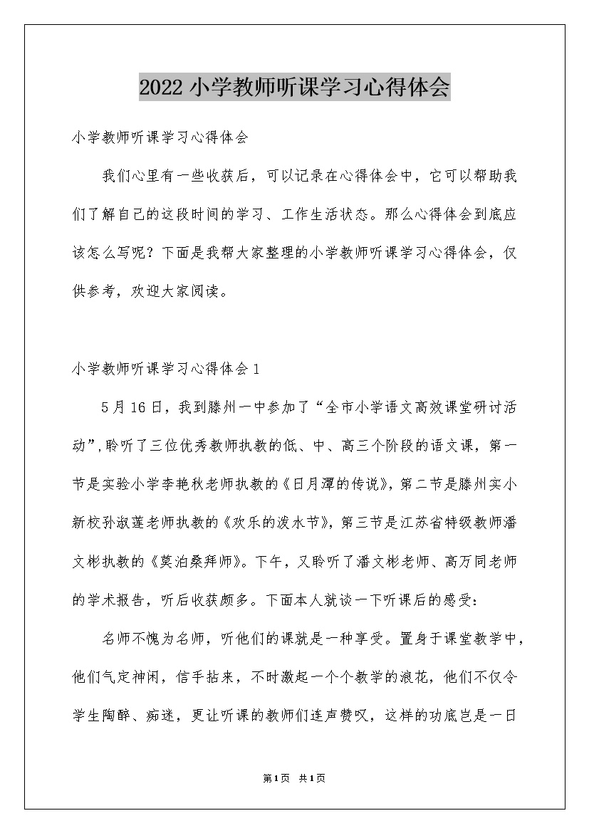 2022小学教师听课学习心得体会