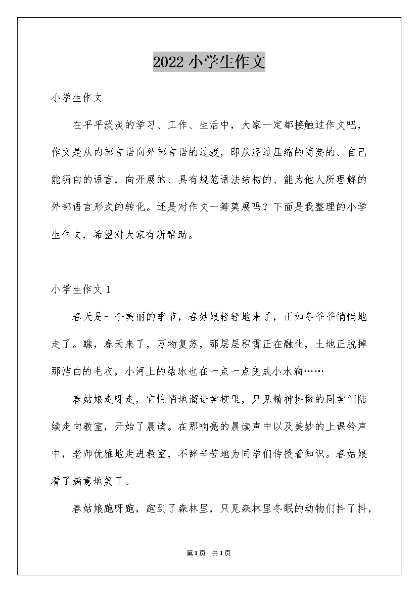 2022小学生作文