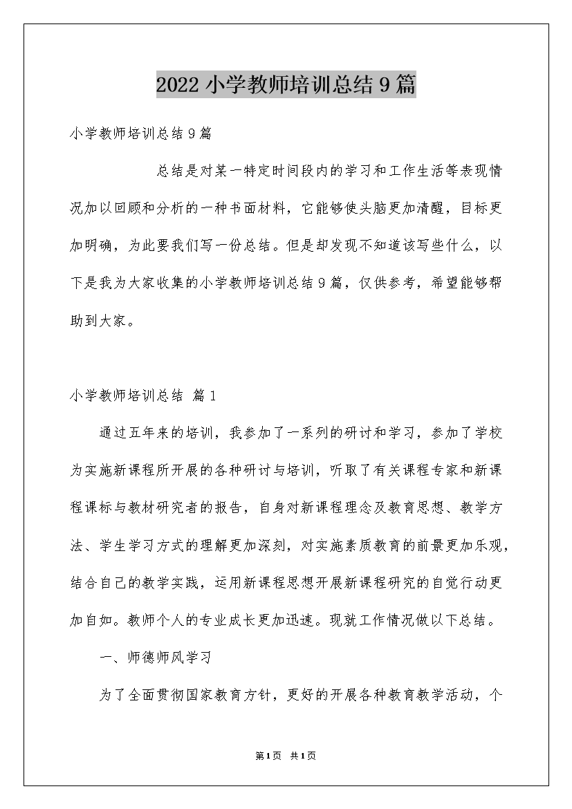 2022小学教师培训总结9篇