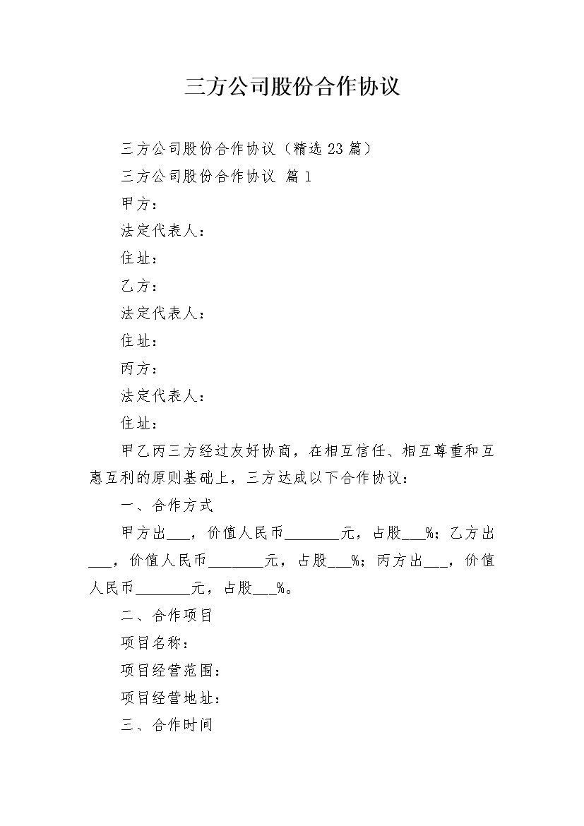 三方公司股份合作协议