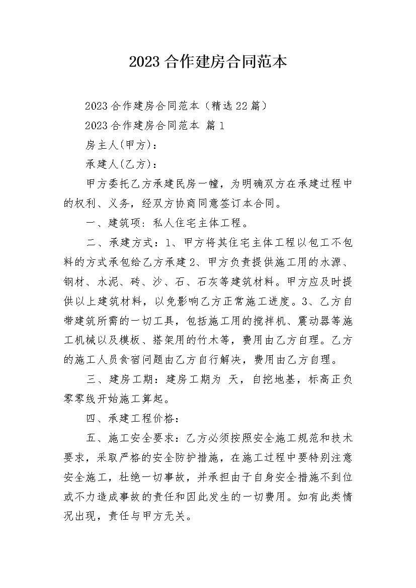 2023合作建房合同范本