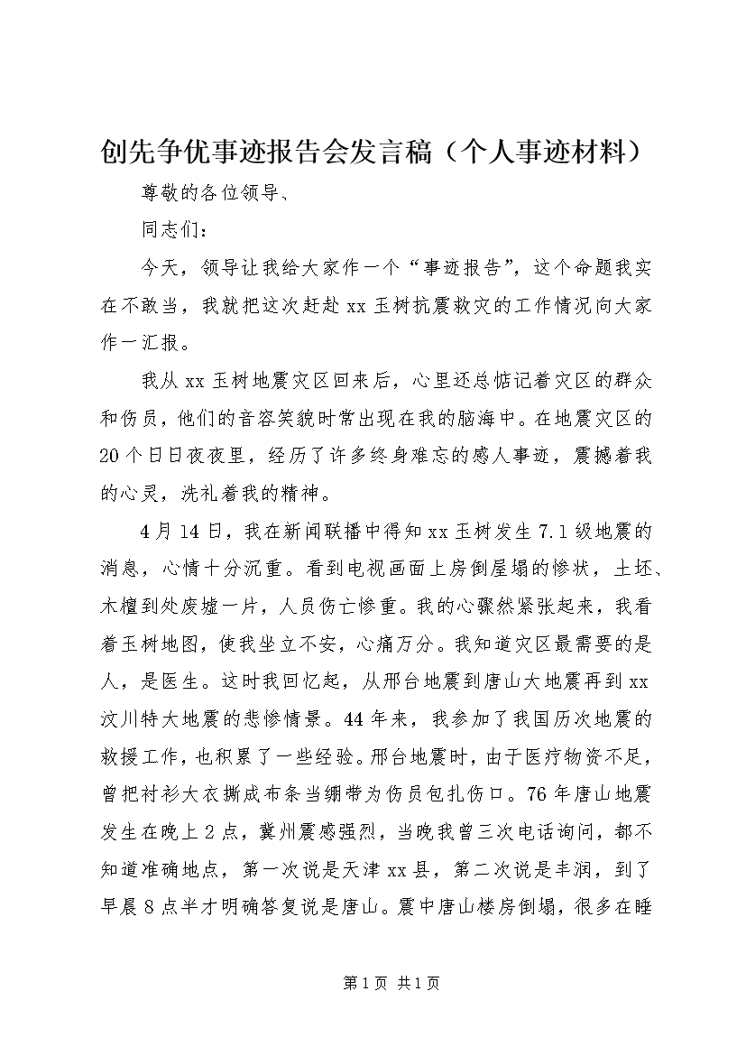 创先争优事迹报告会发言稿(个人事迹材料)