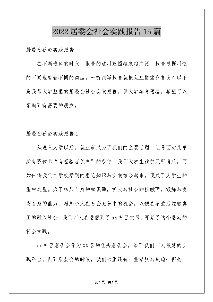 2022居委会社会实践报告15篇