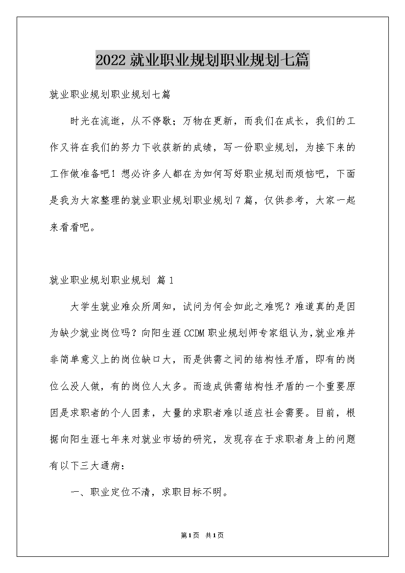 2022就业职业规划职业规划七篇