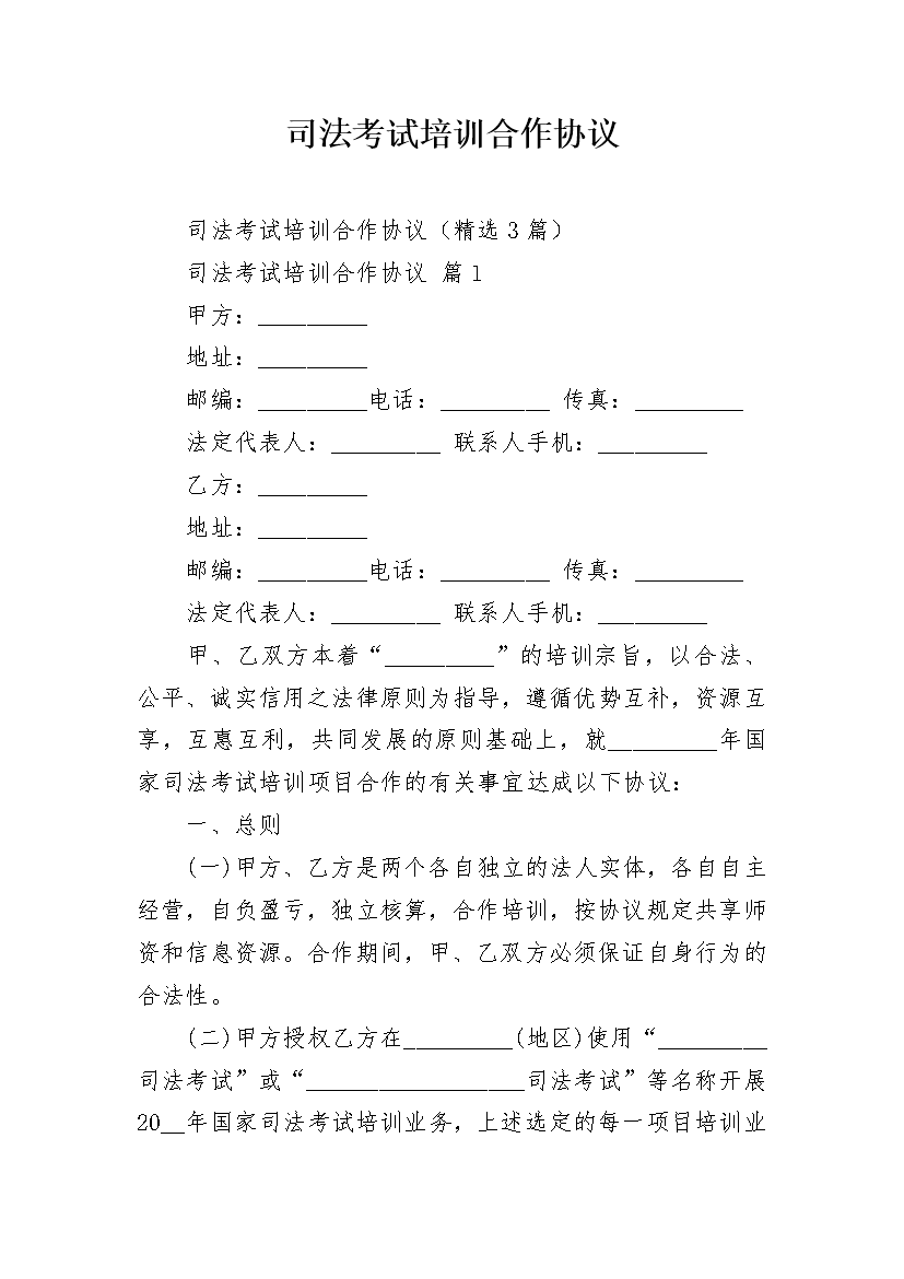 司法考试培训合作协议