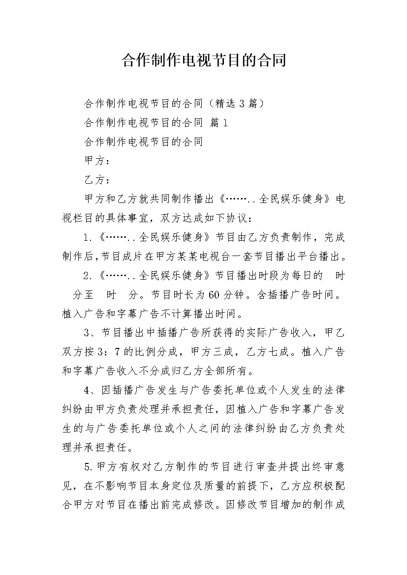 合作制作电视节目的合同