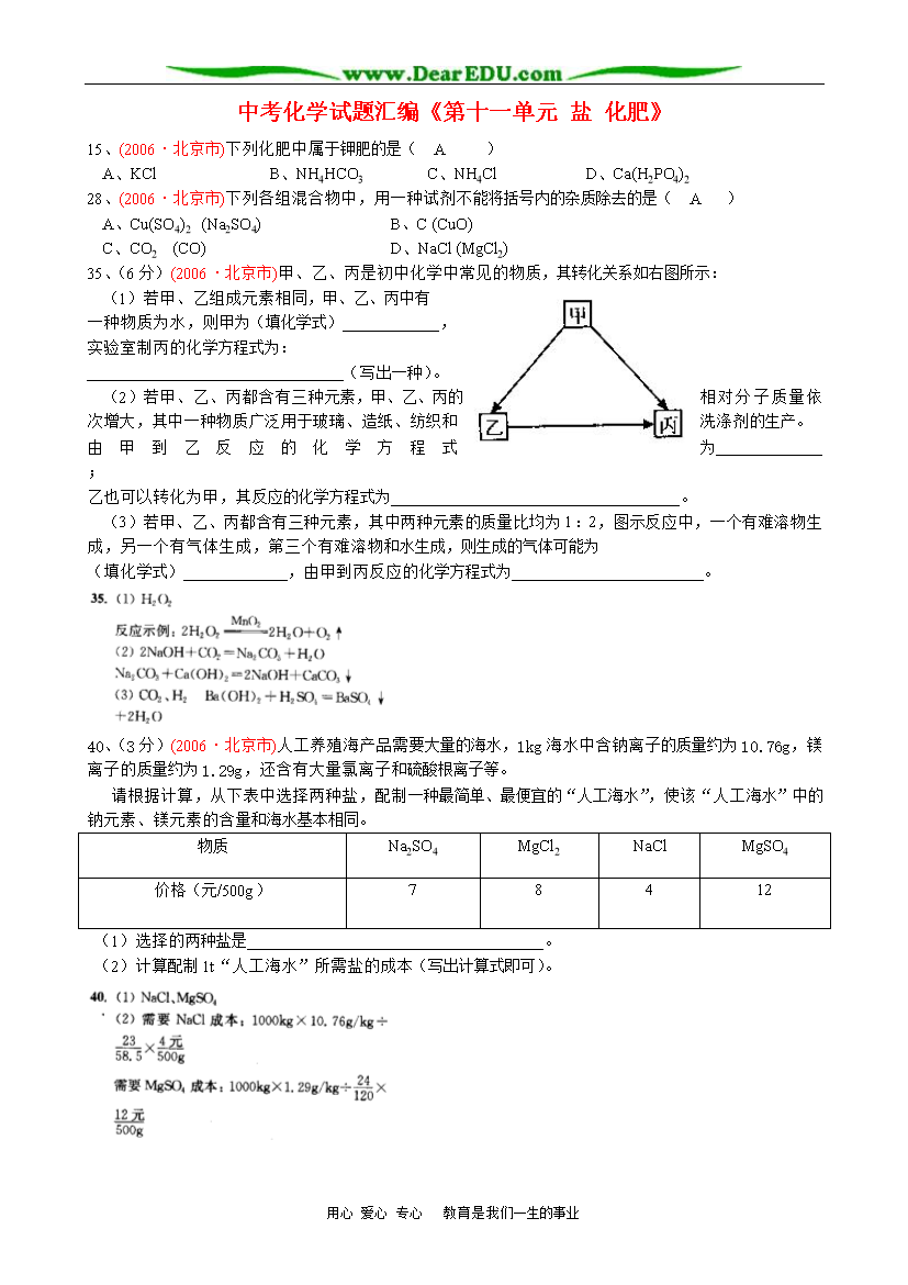试题-全国-2007_中考化学试题汇编《第十一单元 盐 化肥》