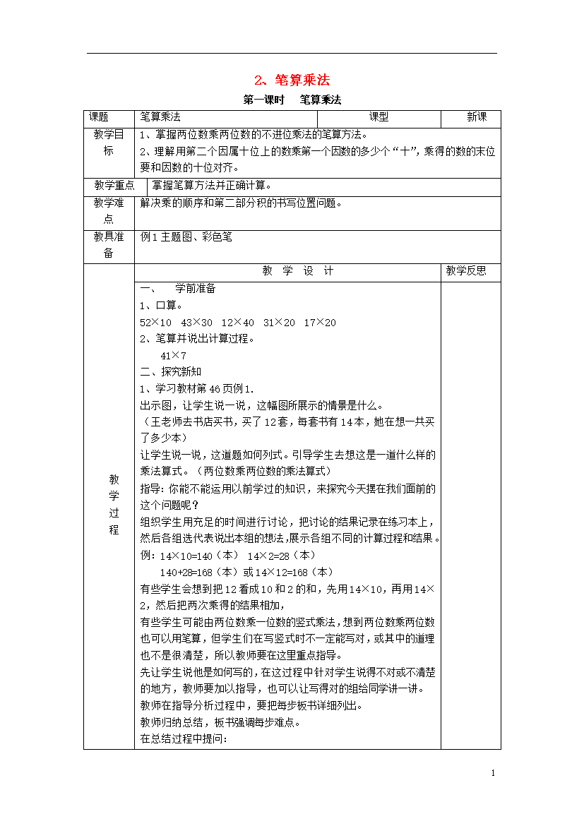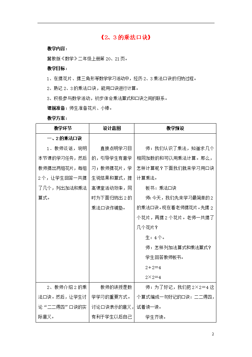 教案-全国-2016_2016秋二年级数学上册 3 第2节《2、3的乘法口诀》教案 (新版)冀教版