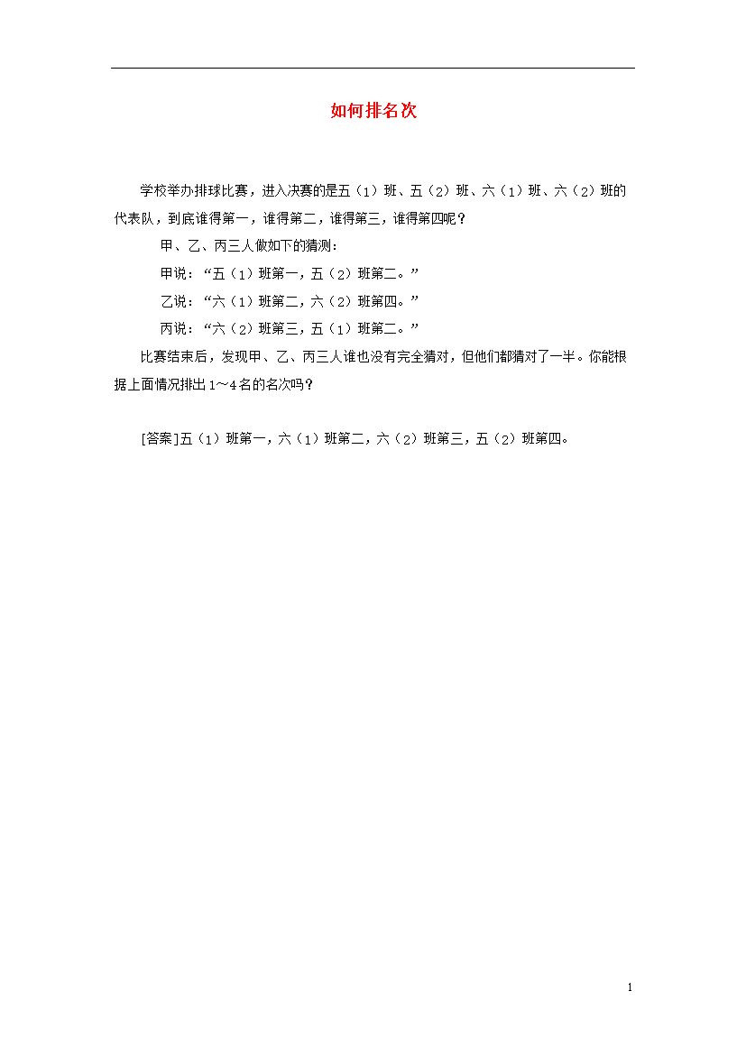 素材-全国-2020_小学数学 趣味数学 如何排名次素材集锦(一二年级段)