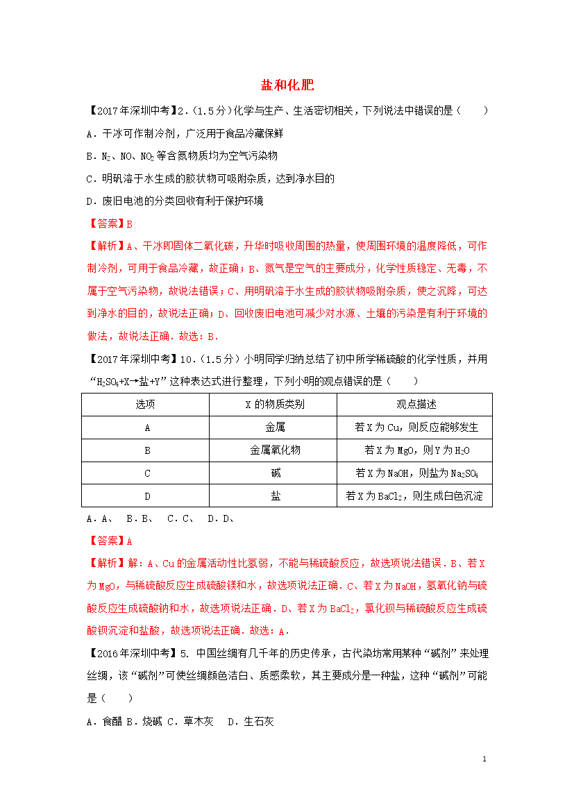 试题-广东-2018_广东省深圳市中考化学试题分类汇编 盐和化肥(含2008-2017十年中考试题)