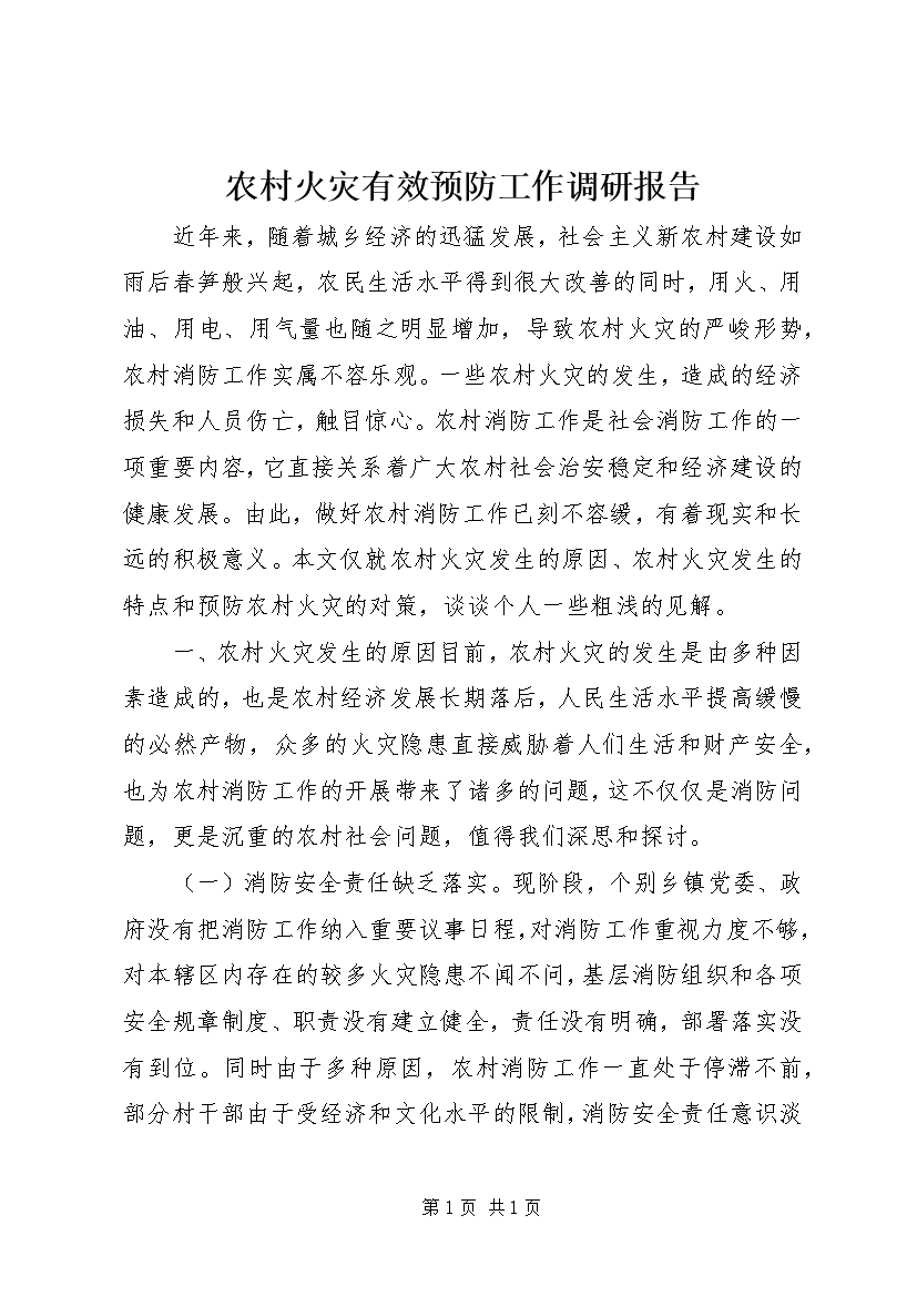 农村火灾有效预防工作调研报告 (2)