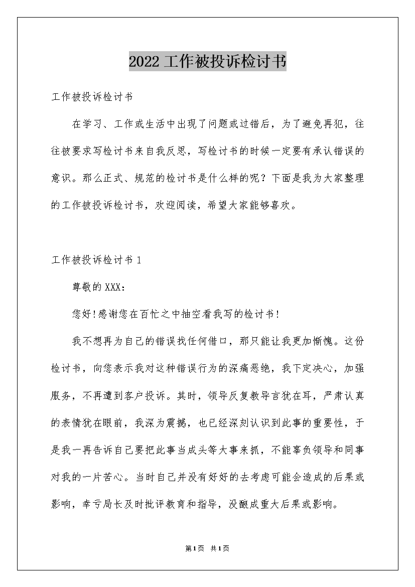 2022工作被投诉检讨书