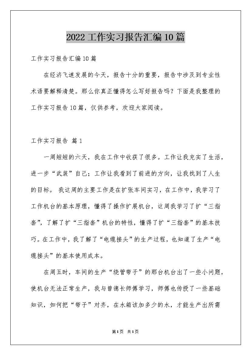 2022工作实习报告汇编10篇