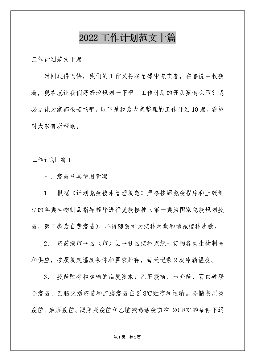 2022工作计划范文十篇