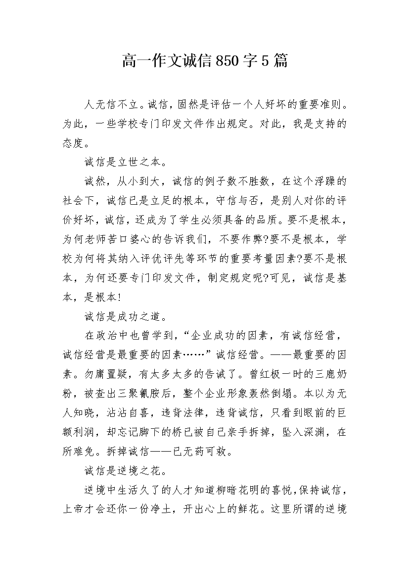 高一作文诚信850字5篇
