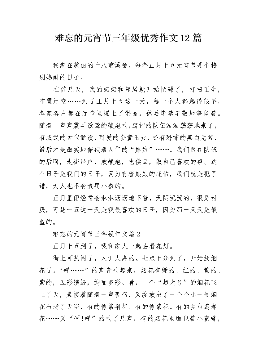 难忘的元宵节三年级优秀作文12篇