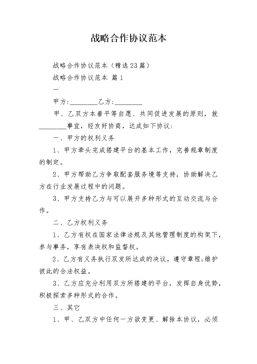 战略合作协议范本