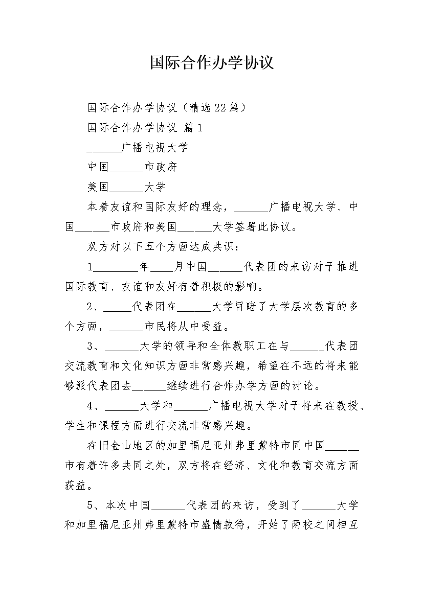 国际合作办学协议