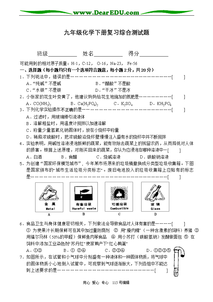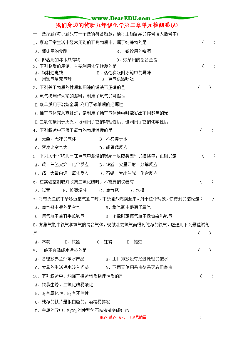 试题-全国-2006_我们身边的物质九年级化学第二章单元检测卷(A)