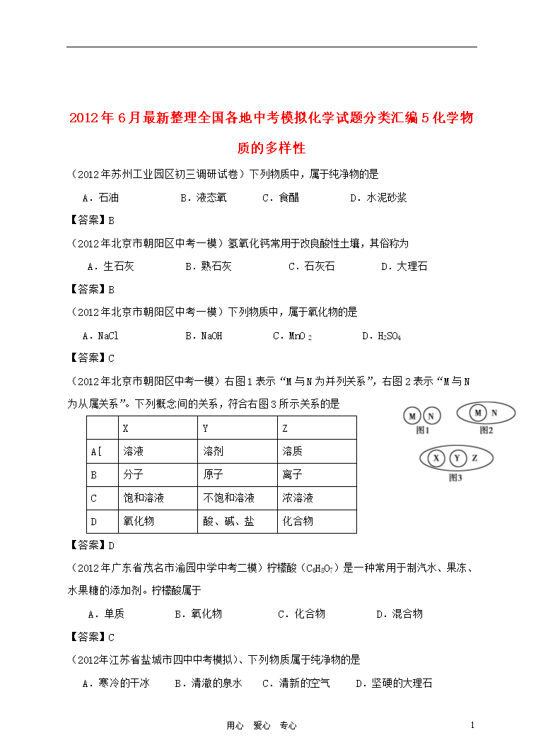 试题-全国-2012_2012年6月最新整理全国各地中考化学模拟试题分类汇编 5物质的多样性