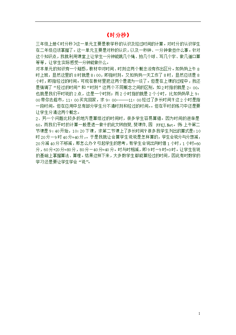 素材-全国-2020_三年级数学上册《时分秒》教学反思 新人教版