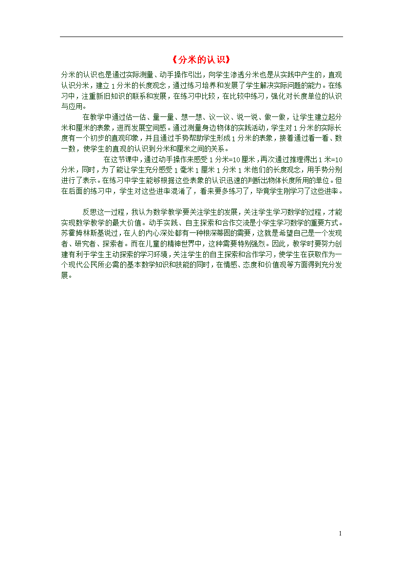 素材-全国-2020_三年级数学上册《分米的认识》教学反思1 新人教版