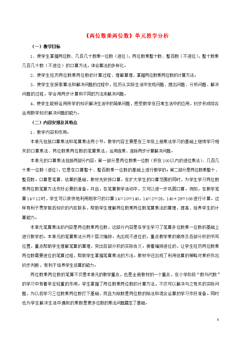 素材-全国-2019_三年级数学下册 4《两位数乘两位数》教学分析素材 新人教版