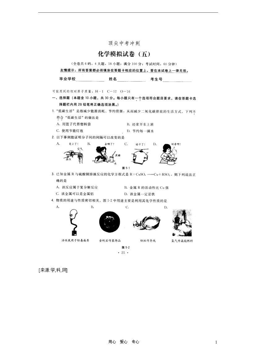 试题-全国-2011_顶尖化学模拟试卷5(扫描版)