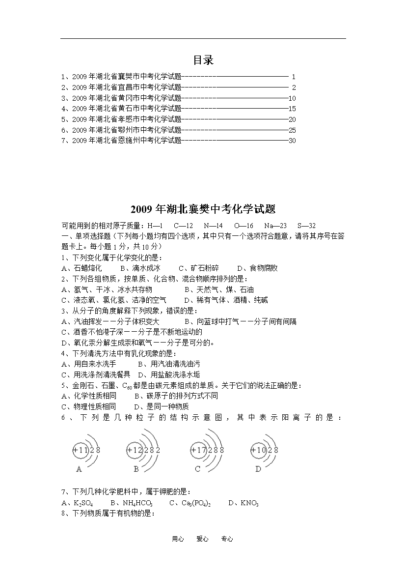 试题-湖北-2009_2009年湖北省九年级化学中考试题(七套)