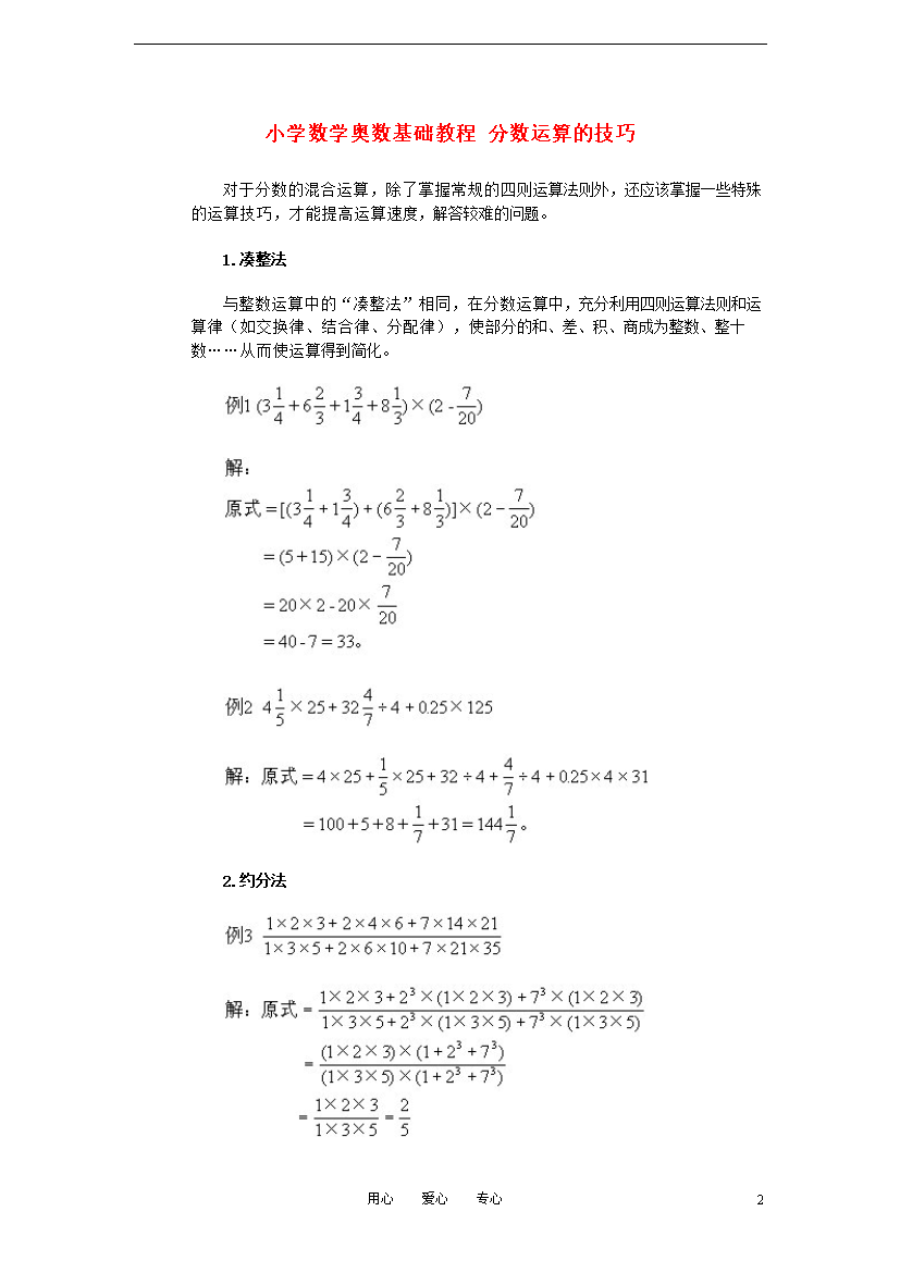 试题-全国-2011_六年级奥林匹克数学基础教程 3 分数运算的技巧
