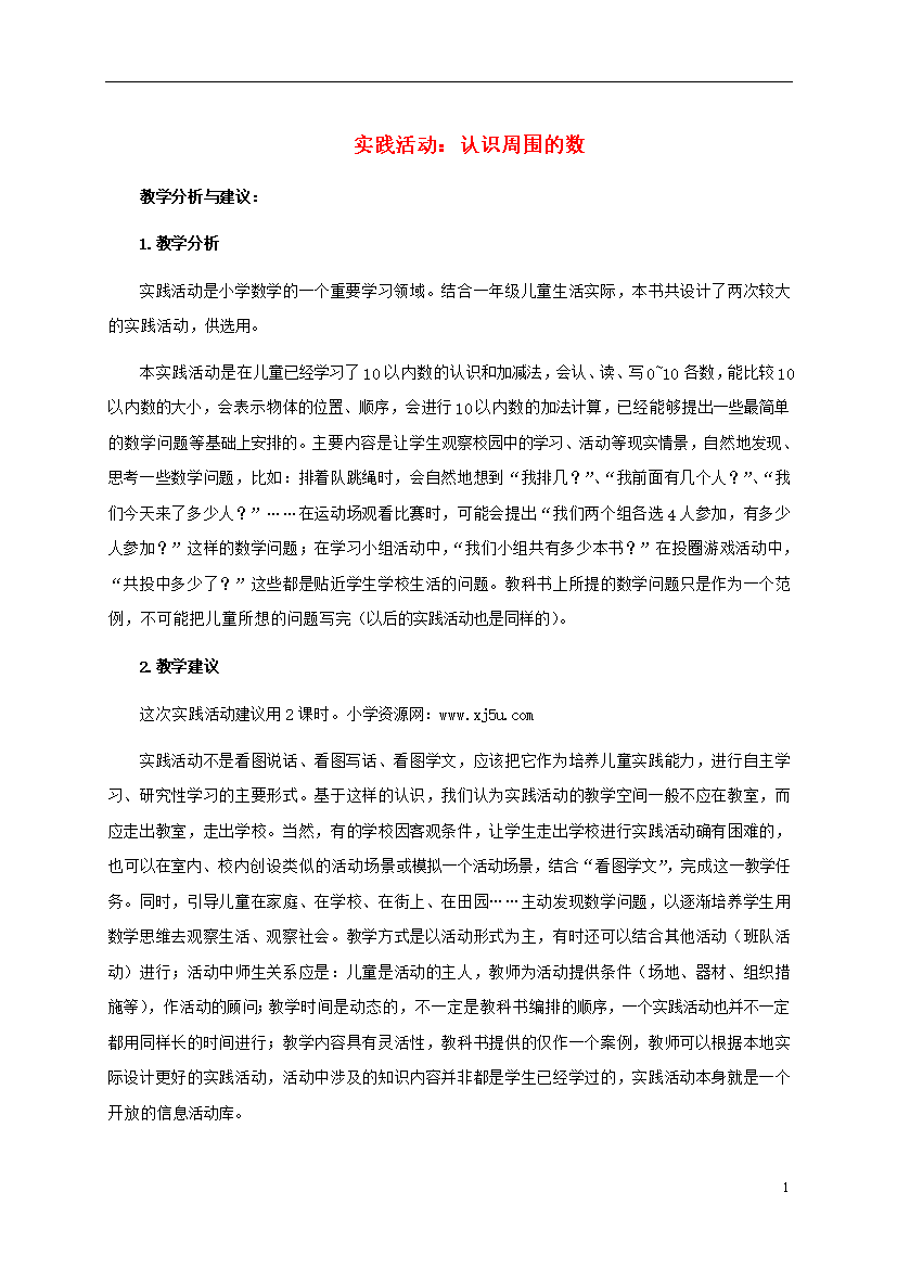 试题-全国-2011_一年级数学上册 实践活动:认识周围的数教学分析与建议 西师大版