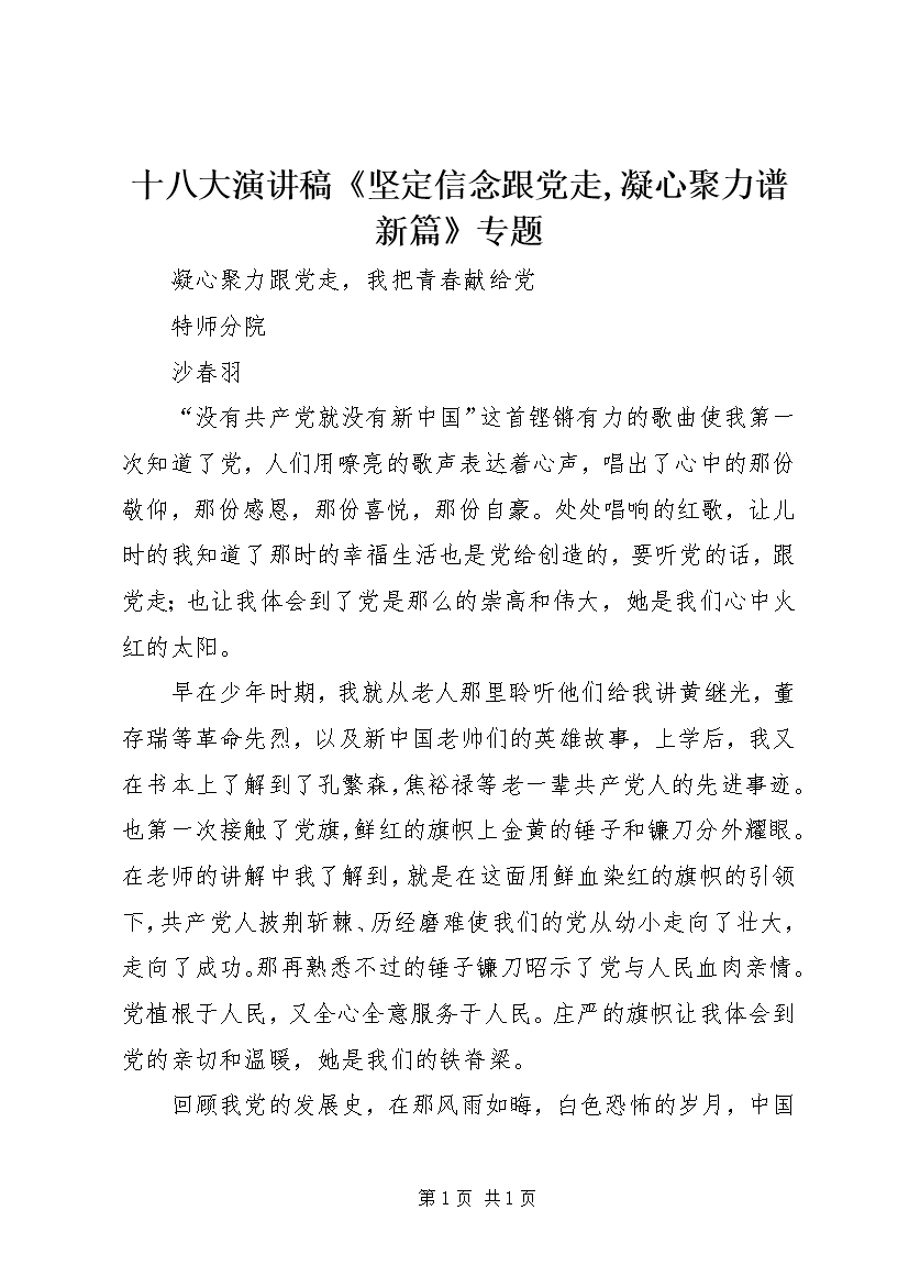 十八大演讲稿《坚定信念跟党走,凝心聚力谱新篇》专题 (2)
